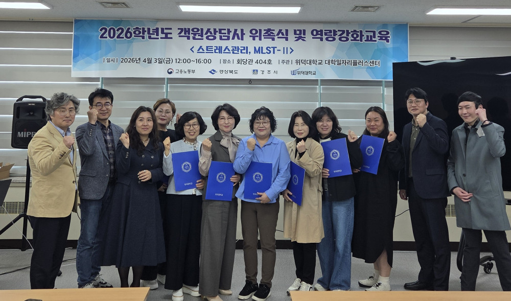 위덕대학교 대학일자리플러스센터(센터장 박상윤)는 지난 4월 3일‘MLST-Ⅱ 자기주도적 진로설정’을 주제로 객원상담사 위촉식 및 역량강화교육을 실시하였다.