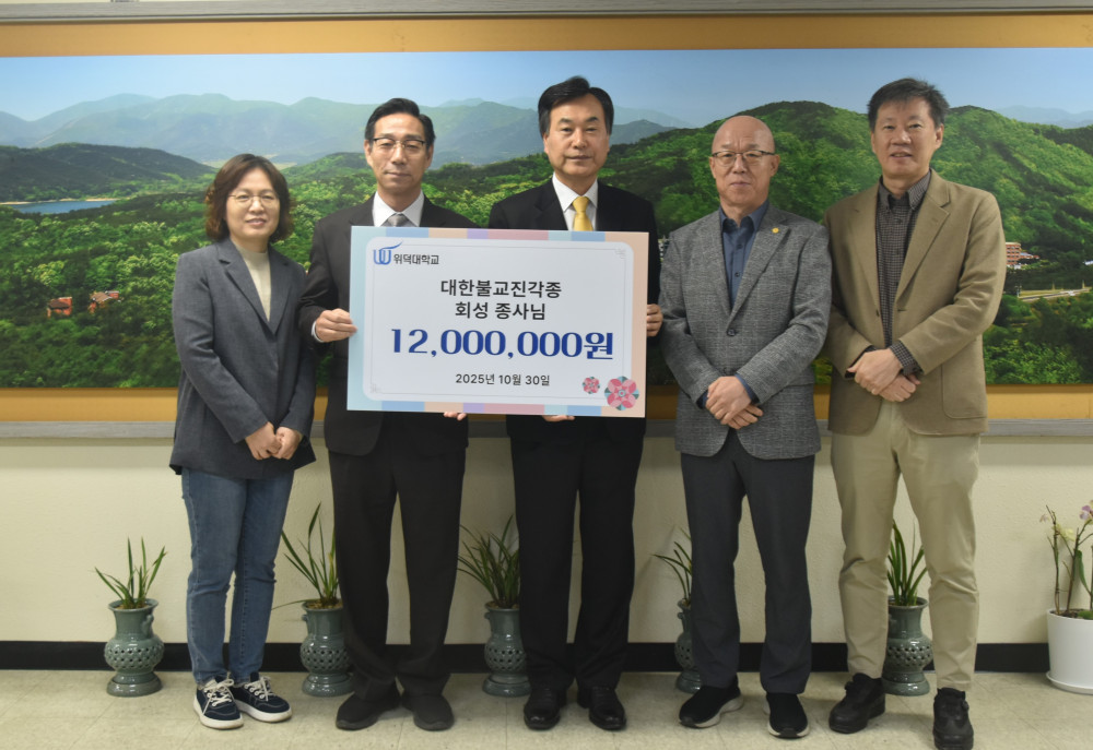 대한불교진각종 명륜심인당 회성 종사(전 위덕대학교 총장)가 10월 30일 종립 위덕대학교 발전을 위해 발전기금을 기탁하였다.