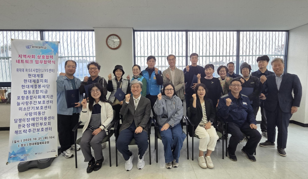 위덕대학교(총장 구동현) RISE사업단 LIVE센터(센터장 김도희)가 지난 10월 21일 현대제철체육공원에서 지역사회 11개 기관과 상호협력 네트워크 구축을 위한 업무협약(MOU)을 체결하였다.