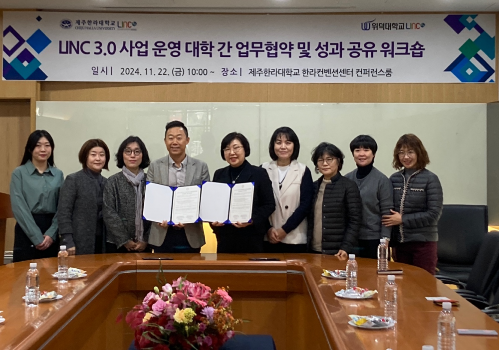 이번 협약식에는 위덕대학교 LINC 3.0사업단의 ULB ICC 센터장(김수향), 제주한라대 LINC 3.0사업단장(김경태) 등 주요 관계자가 참석한 가운데 진행되었다.