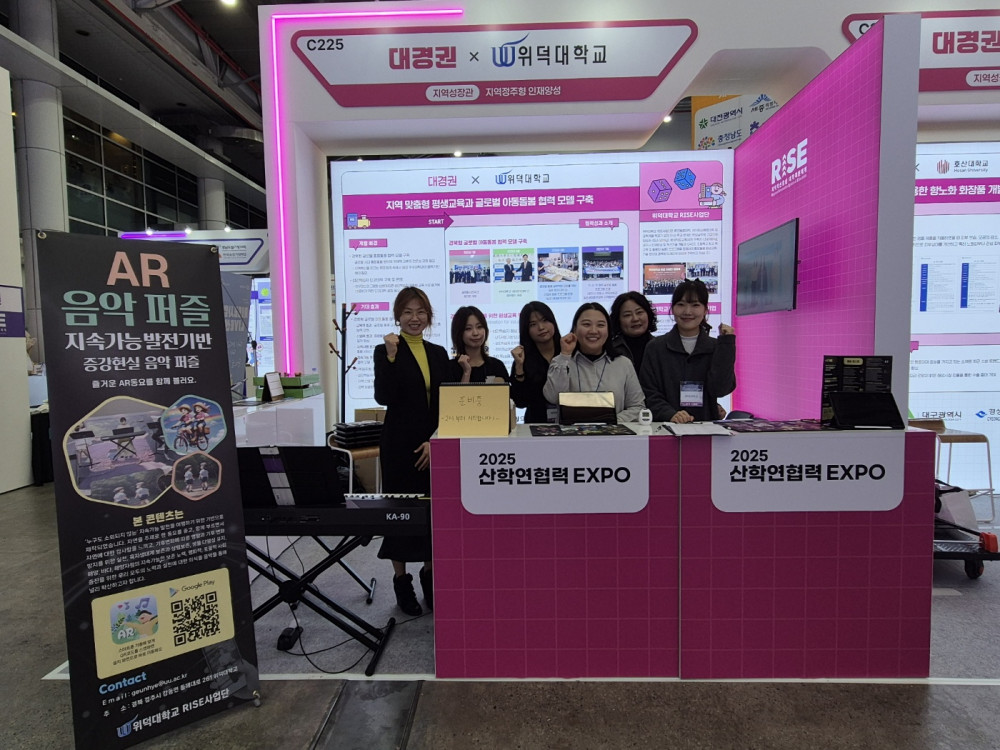 이번 엑스포는 산학연협력을 통한 혁신 성과를 공유하고, 미래산업을 주도할 창의융합형 교육·연구 모델을 소개하기 위해 개최된 행사로, 위덕대학교 RISE사업단은 지역사회와 연계한 교육혁신 사례로서 ‘AR뮤직사이언스 프로그램’을 중심으로 한 AR음악퍼즐 체험 부스를 운영하였다.